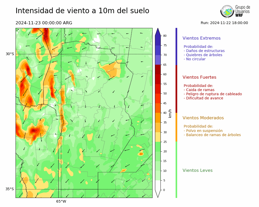 • Intensidad máxima: 26.55 km/h (23/11/2024 02hs.)