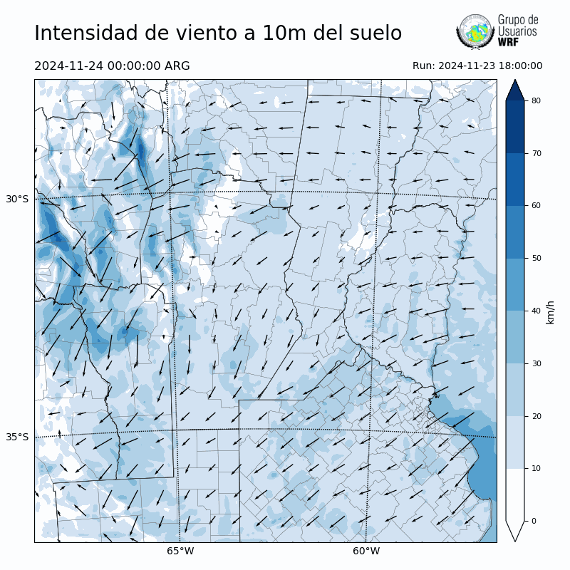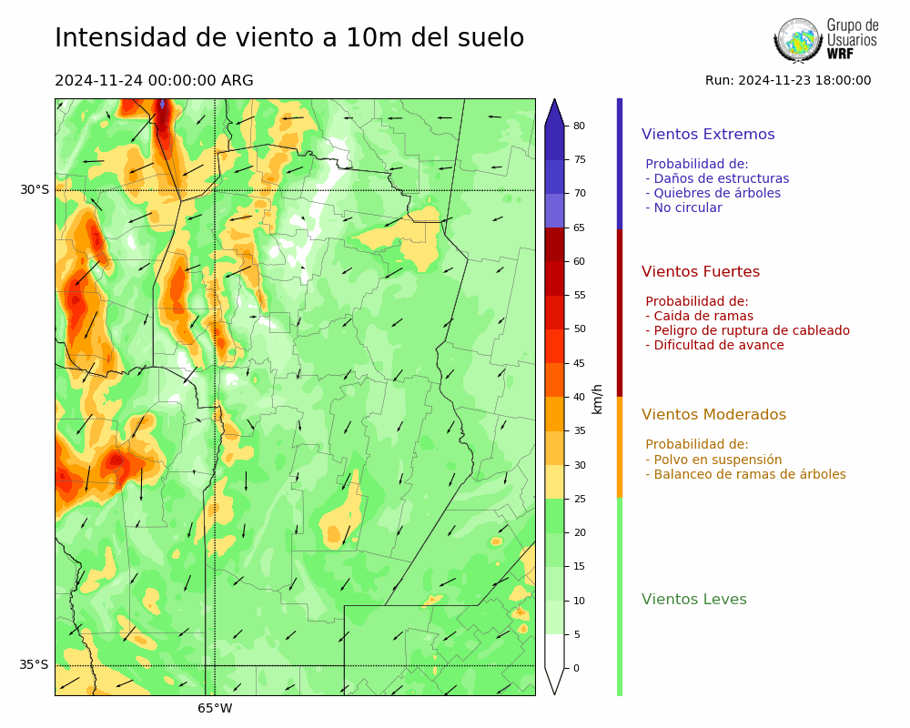 • Intensidad máxima: 20.00 km/h (24/11/2024 12hs.)