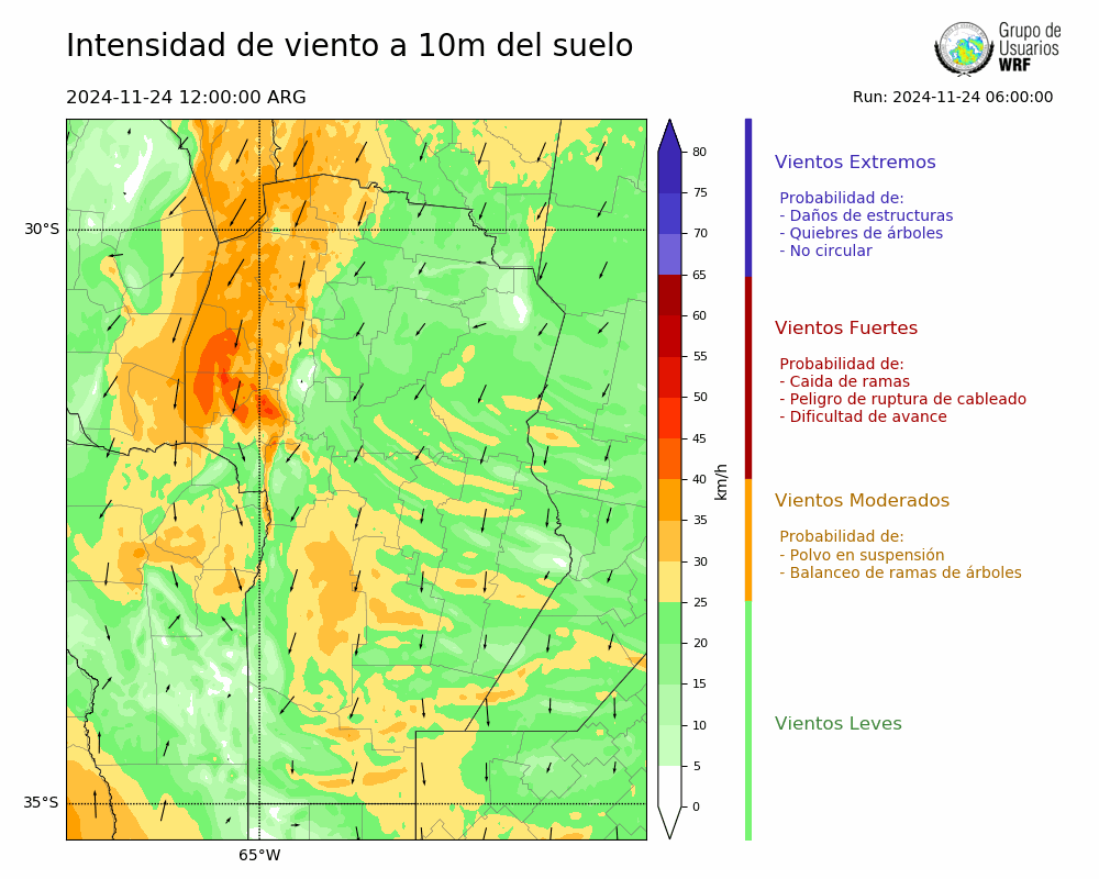 • Intensidad máxima: 32.60 km/h (24/11/2024 15hs.)