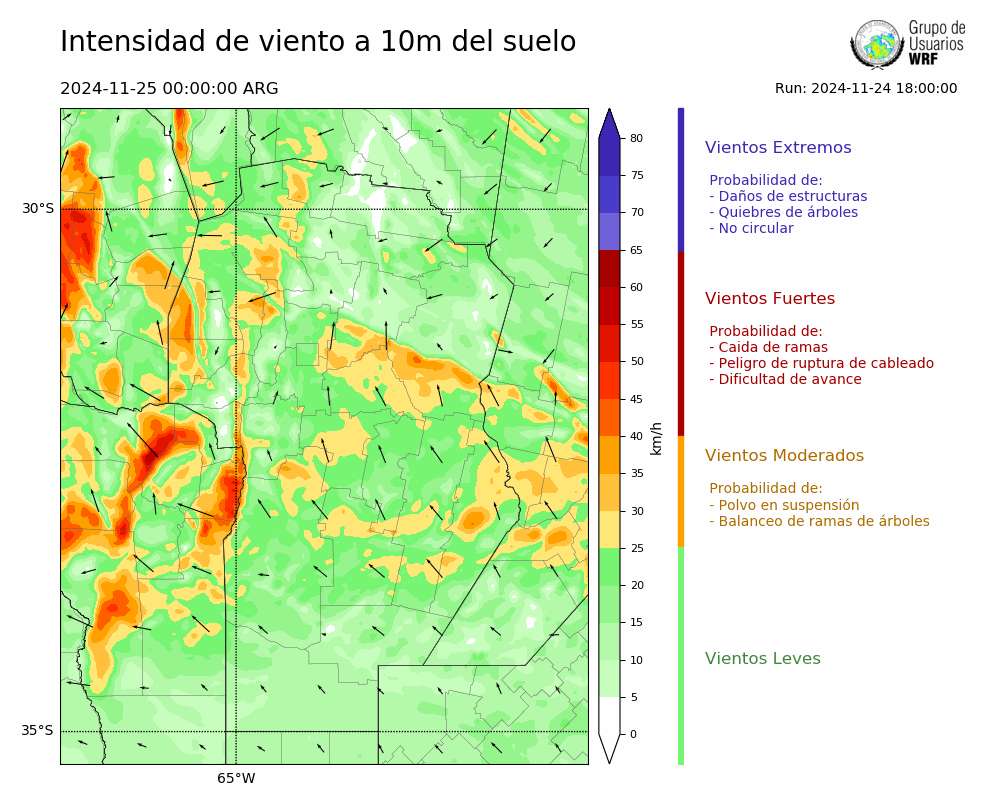 • Intensidad máxima: 38.91 km/h (25/11/2024 06hs.)
