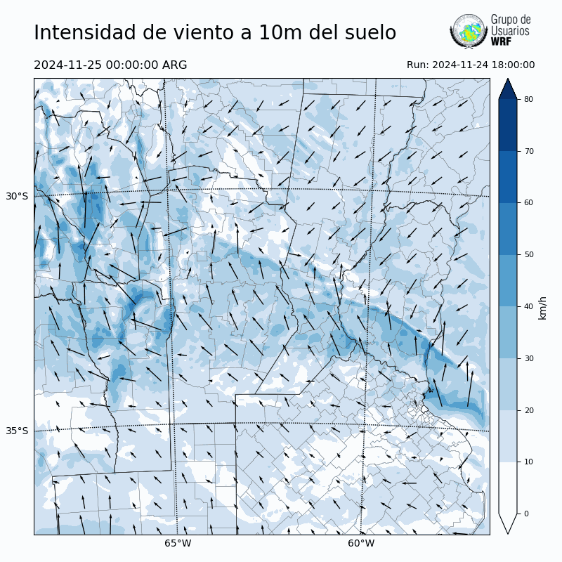 • Intensidad máxima: 7.89 km/h (26/11/2024 03hs.)