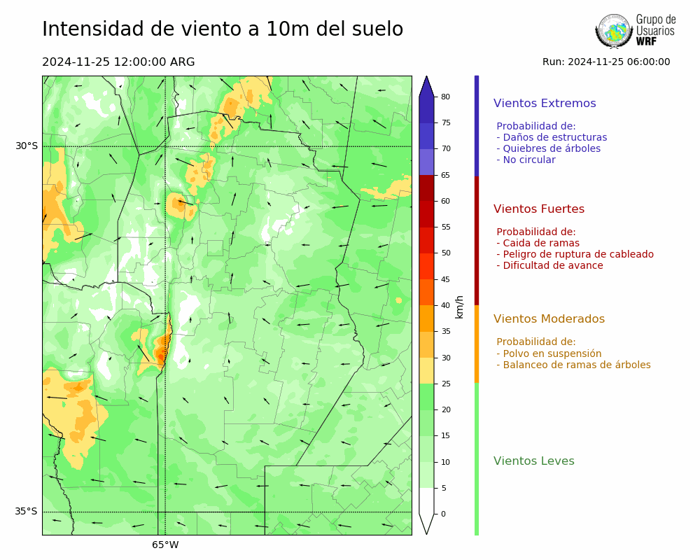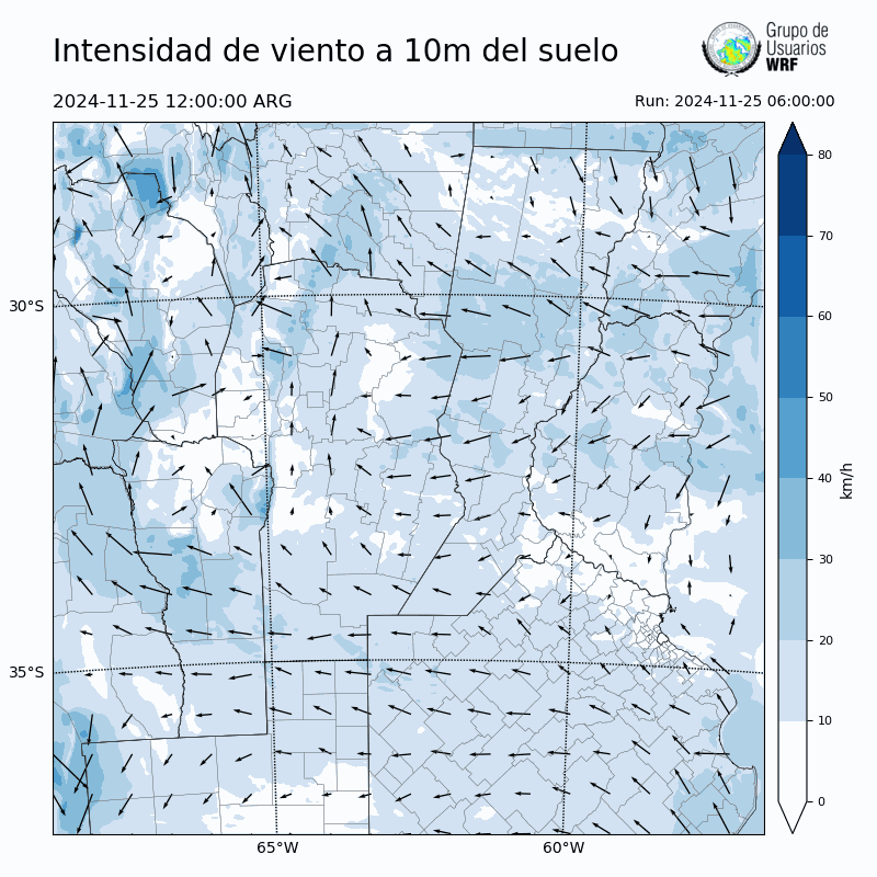 • Intensidad máxima: 12.89 km/h (25/11/2024 12hs.)