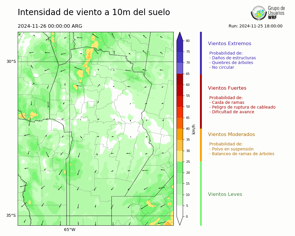 • Intensidad máxima: 12.26 km/h (26/11/2024 20hs.)