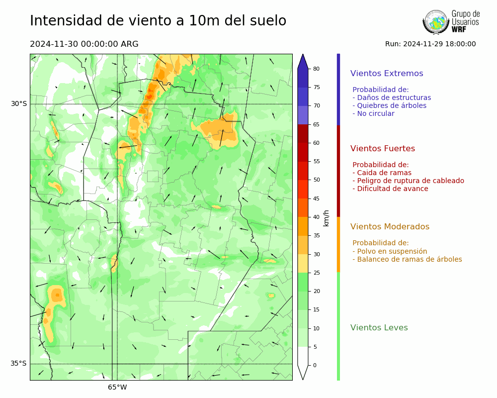 • Intensidad máxima: 12.96 km/h (30/11/2024 06hs.)