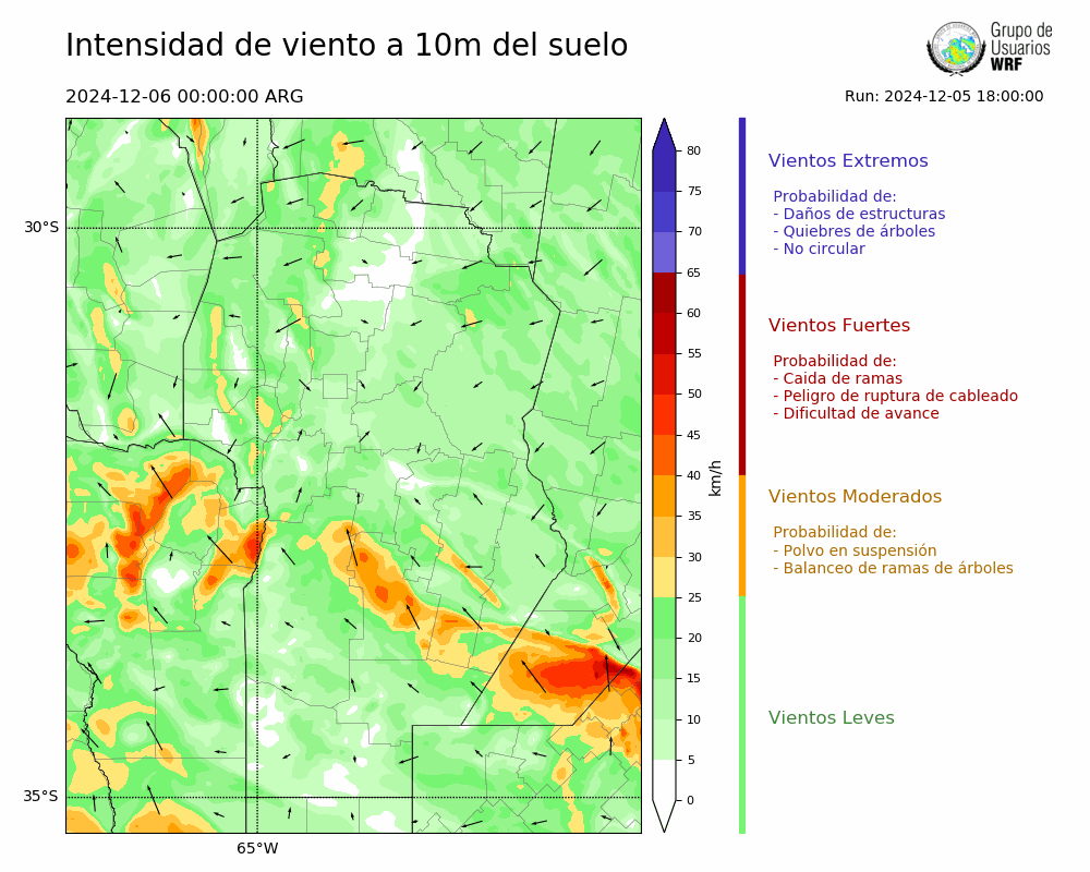 • Intensidad máxima: 25.56 km/h (06/12/2024 04hs.)