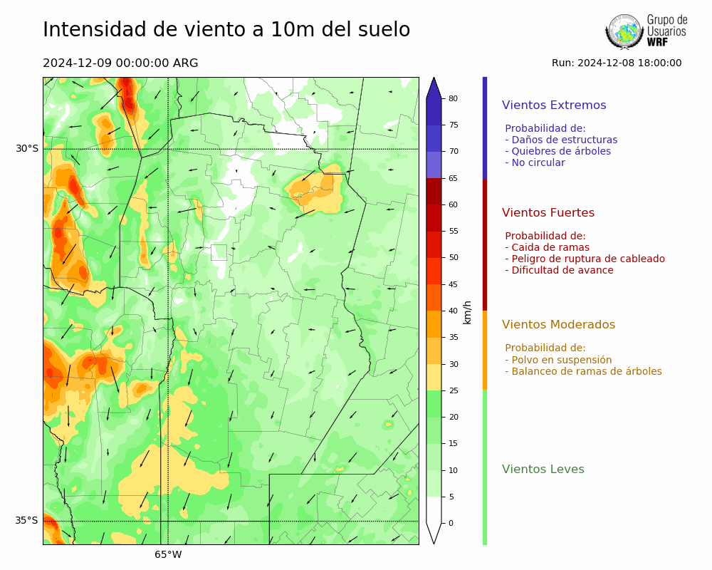 • Intensidad máxima: 10.94 km/h (09/12/2024 11hs.)