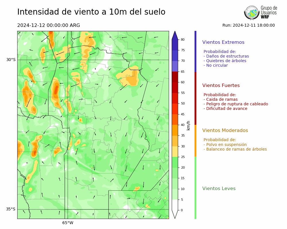• Intensidad máxima: 18.54 km/h (12/12/2024 11hs.)