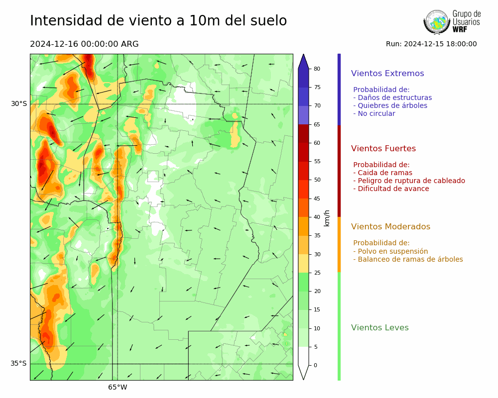 • Intensidad máxima: 22.01 km/h (18/12/2024 02hs.)