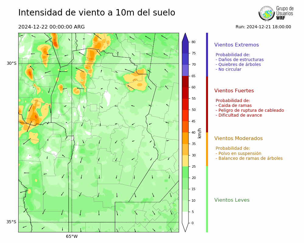 • Intensidad máxima: 12.71 km/h (22/12/2024 10hs.)