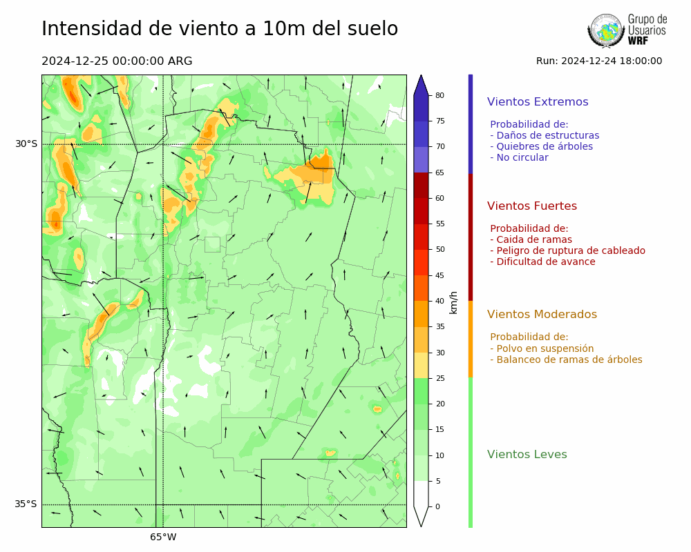 • Intensidad máxima: 9.04 km/h (25/12/2024 04hs.)