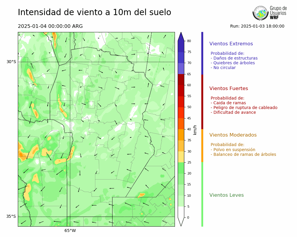 • Intensidad máxima: 25.18 km/h (04/01/2025 03hs.)