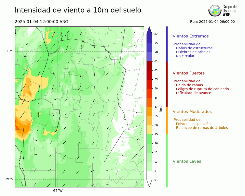 • Intensidad máxima: 29.07 km/h (04/01/2025 19hs.)