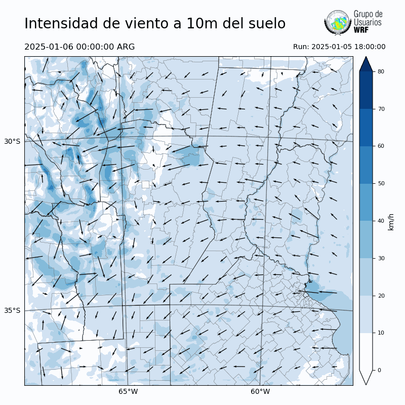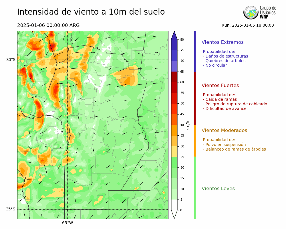 • Intensidad máxima: 32.56 km/h (06/01/2025 05hs.)