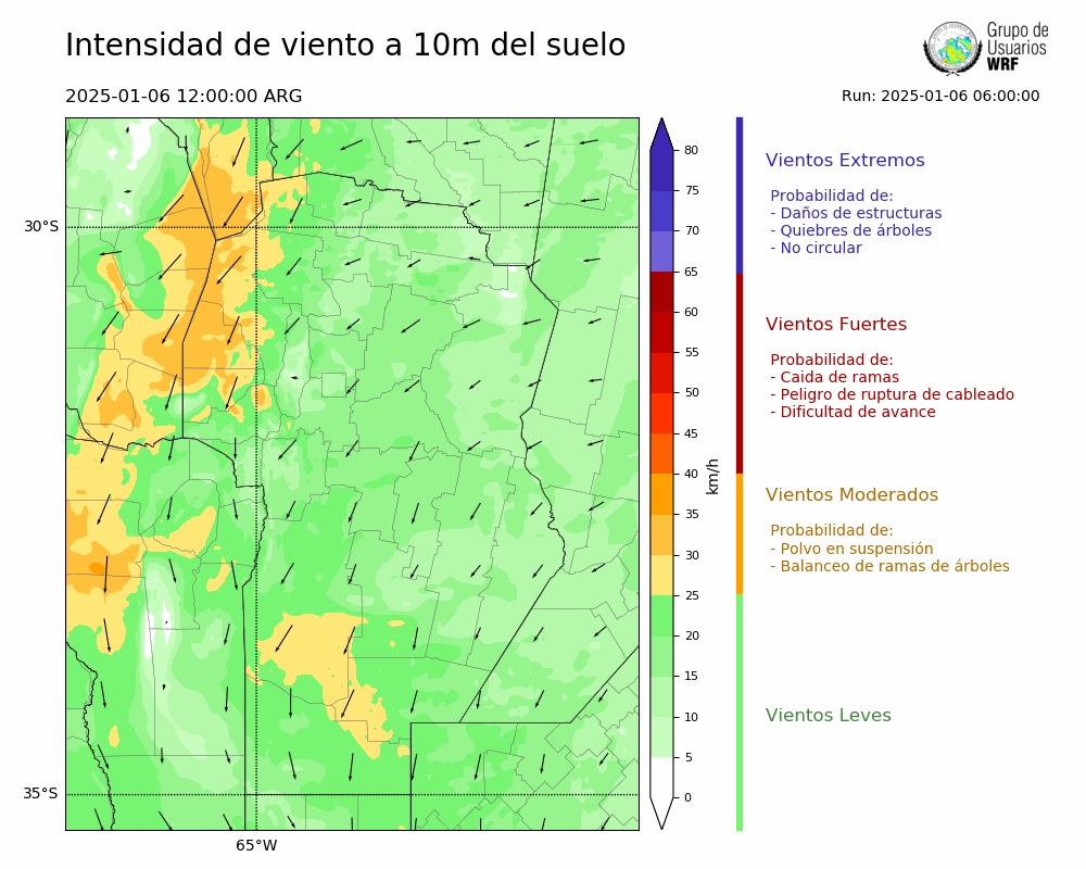• Intensidad máxima: 24.89 km/h (06/01/2025 13hs.)