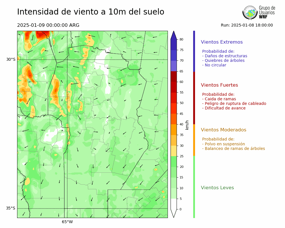 • Intensidad máxima: 12.74 km/h (09/01/2025 02hs.)