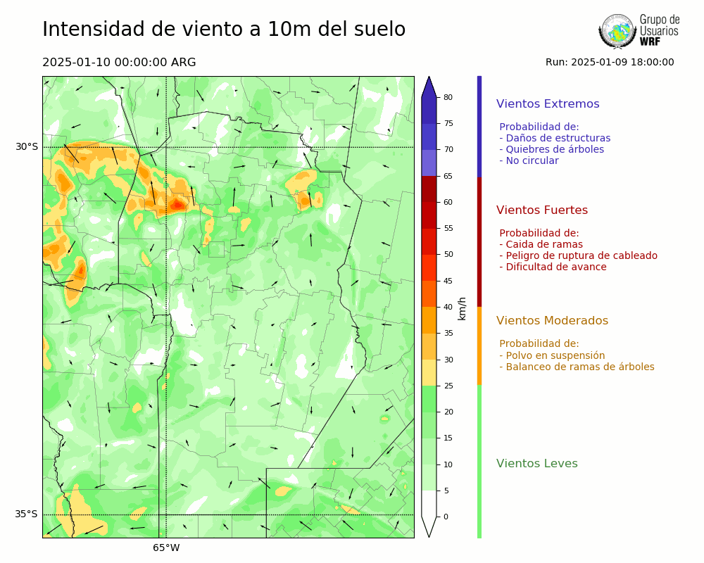 • Intensidad máxima: 30.08 km/h (10/01/2025 03hs.)