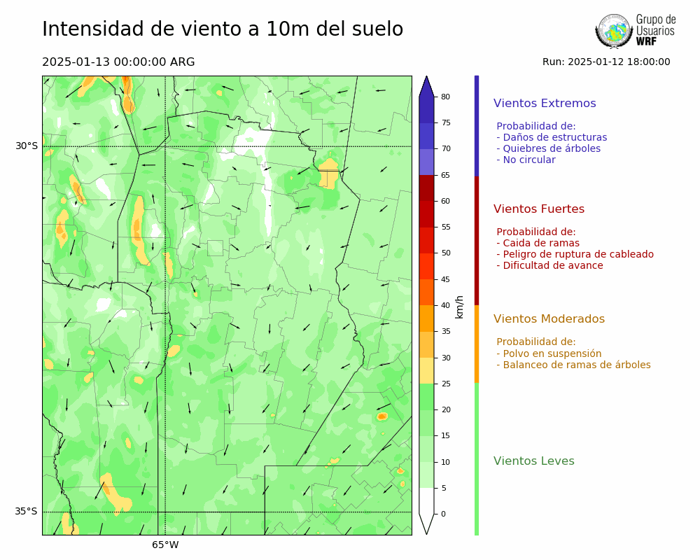 • Intensidad máxima: 12.49 km/h (13/01/2025 11hs.)