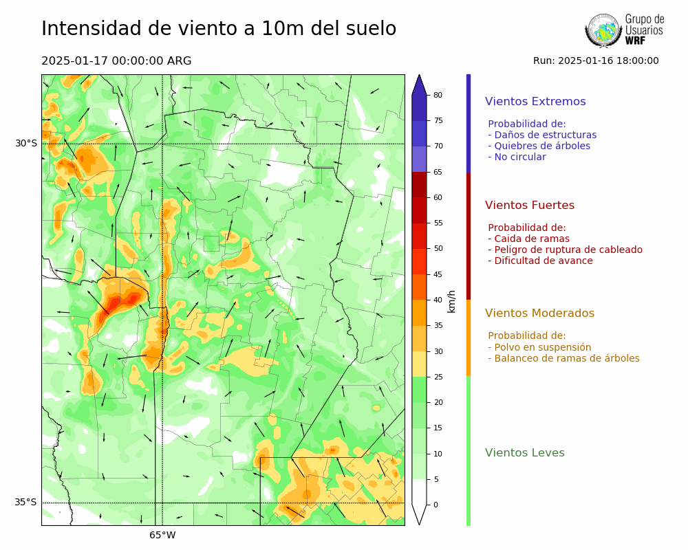 • Intensidad máxima: 9.56 km/h (17/01/2025 20hs.)