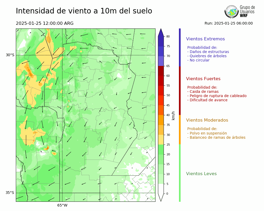 • Intensidad máxima: 19.20 km/h (25/01/2025 18hs.)