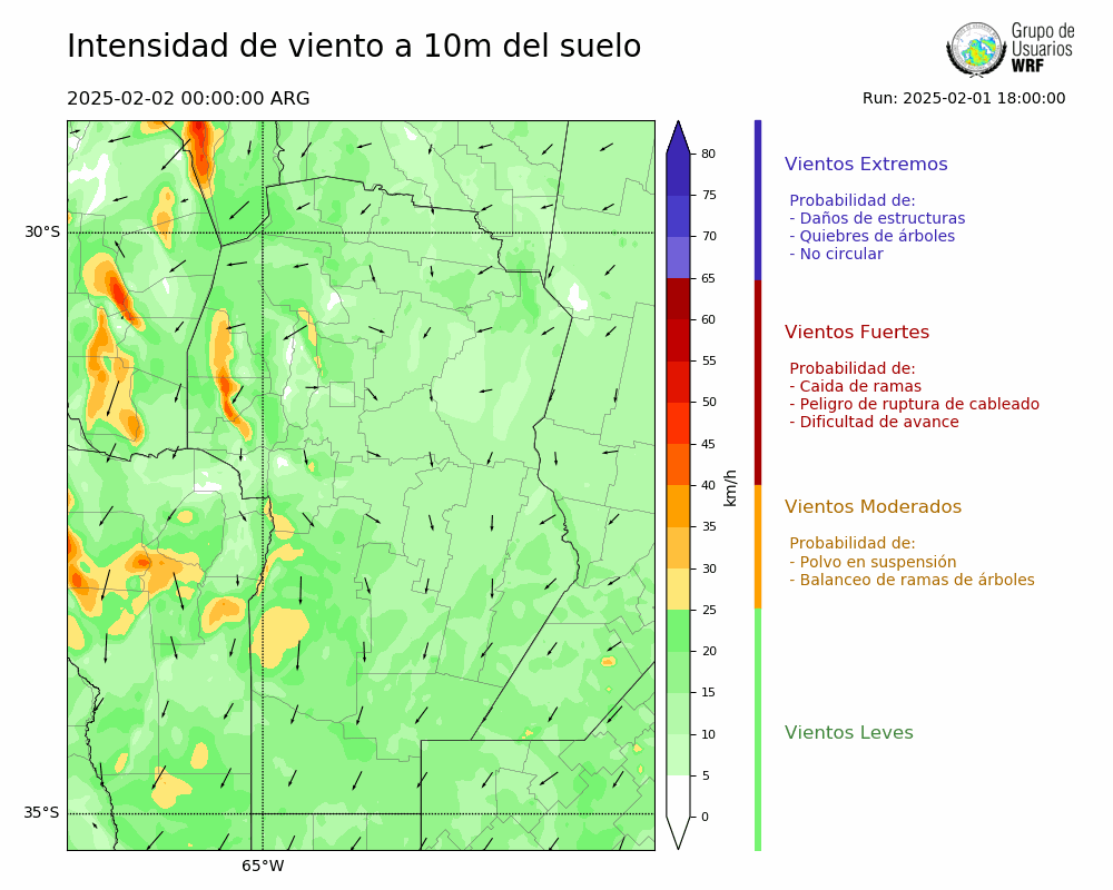 • Intensidad máxima: 17.51 km/h (03/02/2025 20hs.)