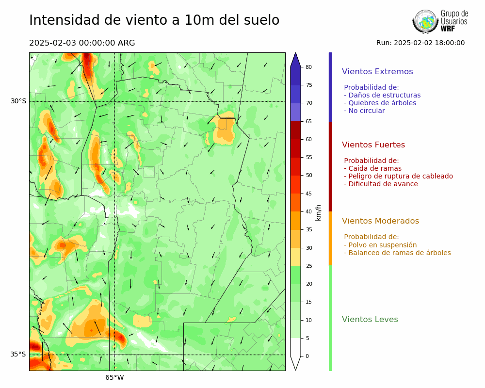 • Intensidad máxima: 18.98 km/h (03/02/2025 11hs.)