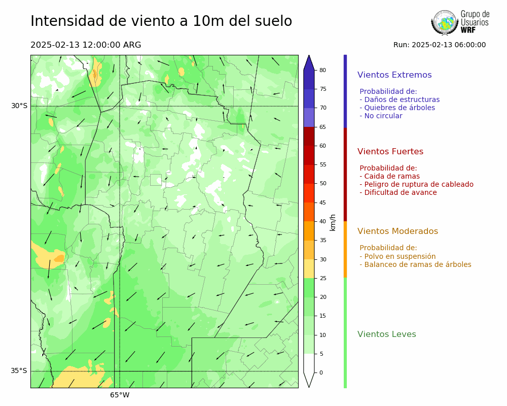 • Intensidad máxima: 4.21 km/h (14/02/2025 11hs.)