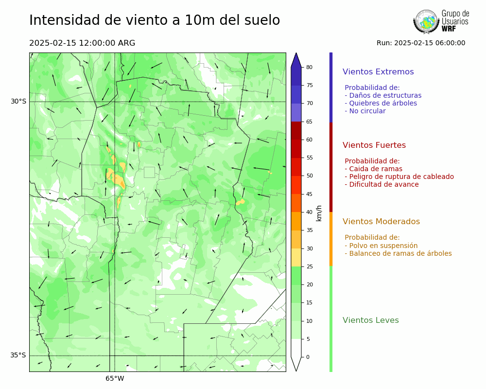 • Intensidad máxima: 7.98 km/h (17/02/2025 16hs.)