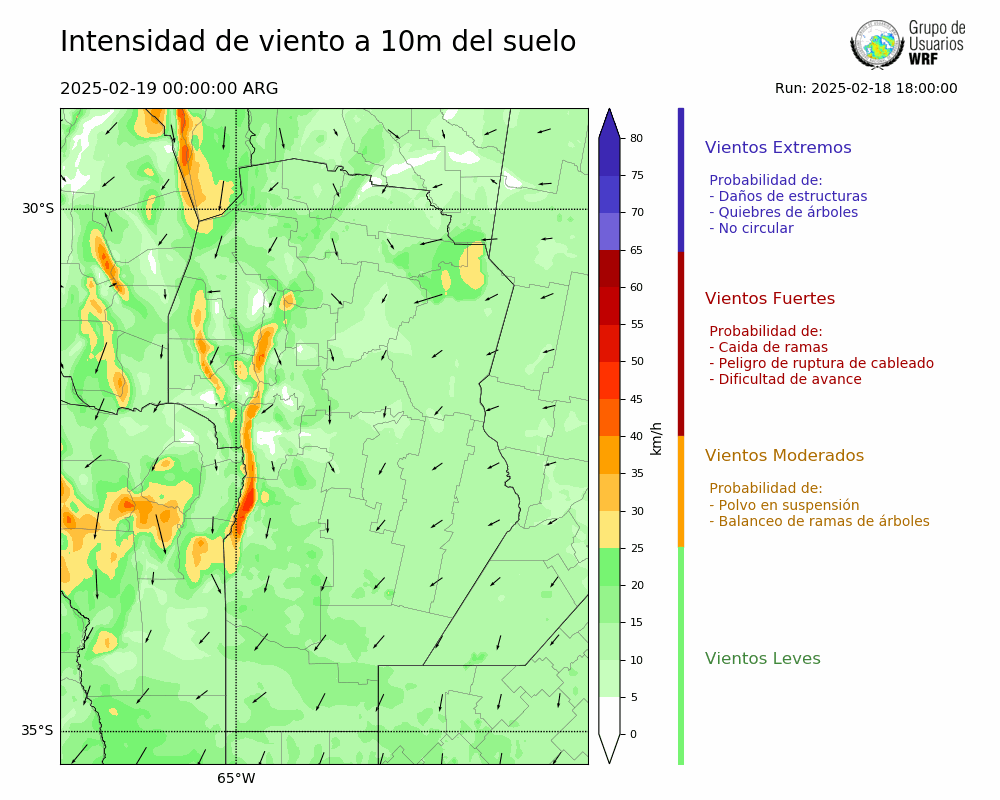• Intensidad máxima: 18.25 km/h (19/02/2025 21hs.)
