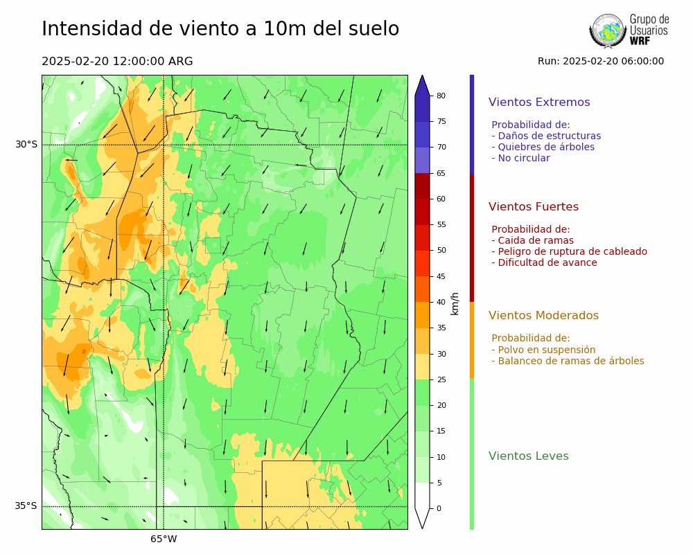 • Intensidad máxima: 9.48 km/h (22/02/2025 03hs.)