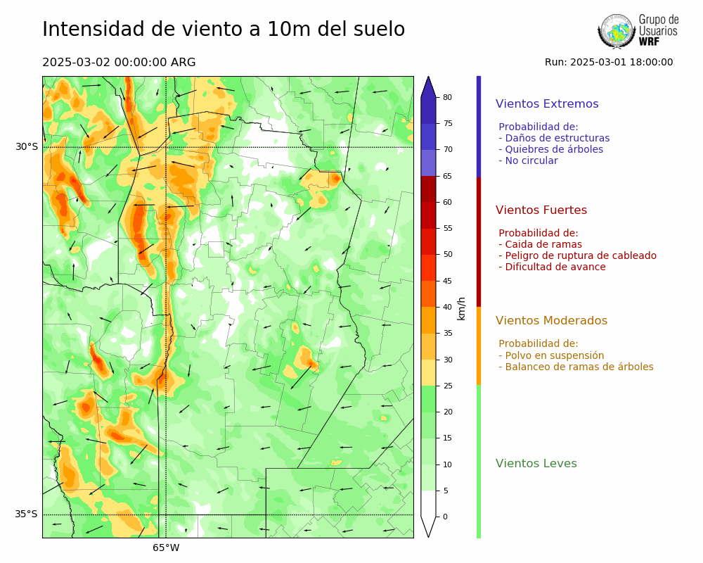 • Intensidad máxima: 12.00 km/h (02/03/2025 21hs.)