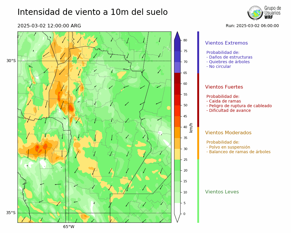 • Intensidad máxima: 27.75 km/h (02/03/2025 15hs.)