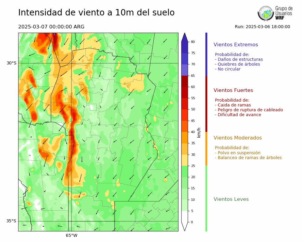 • Intensidad máxima: 32.78 km/h (07/03/2025 02hs.)