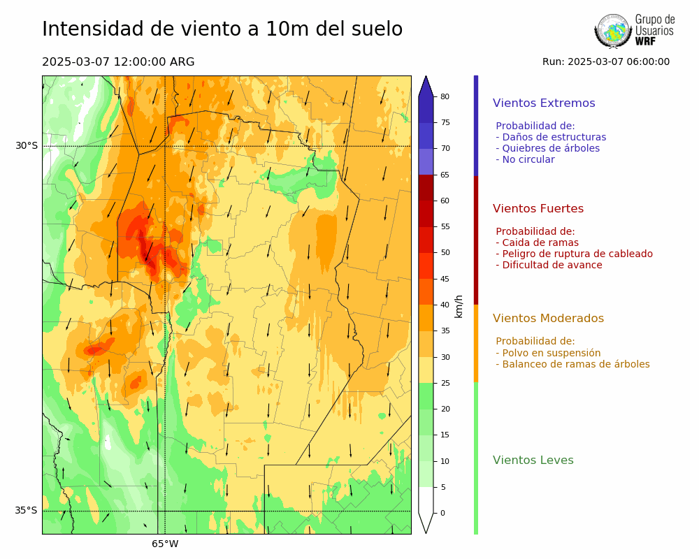 • Intensidad máxima: 36.91 km/h (07/03/2025 16hs.)