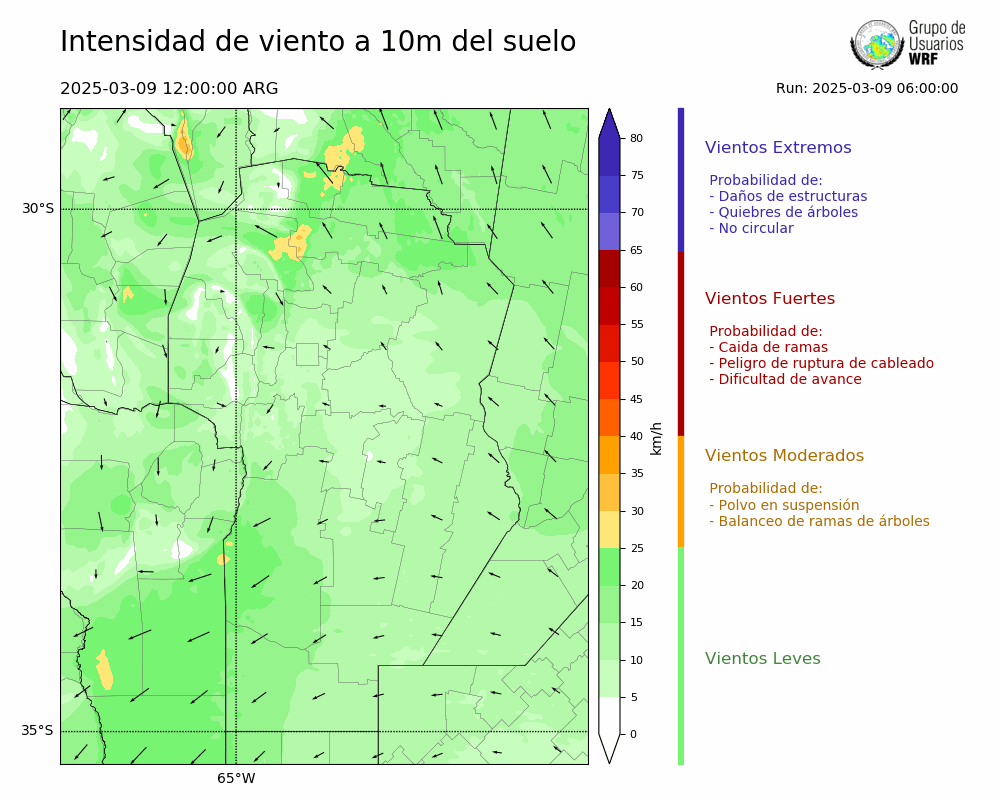• Intensidad máxima: 16.46 km/h (09/03/2025 17hs.)