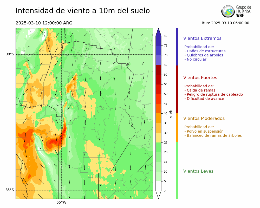 • Intensidad máxima: 30.05 km/h (10/03/2025 13hs.)