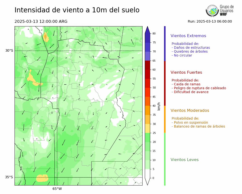 • Intensidad máxima: 13.99 km/h (13/03/2025 18hs.)