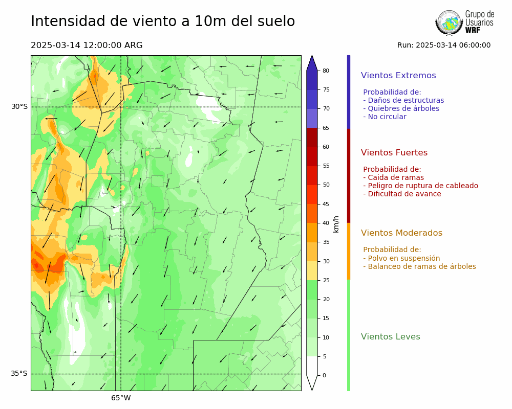 • Intensidad máxima: 23.99 km/h (14/03/2025 18hs.)