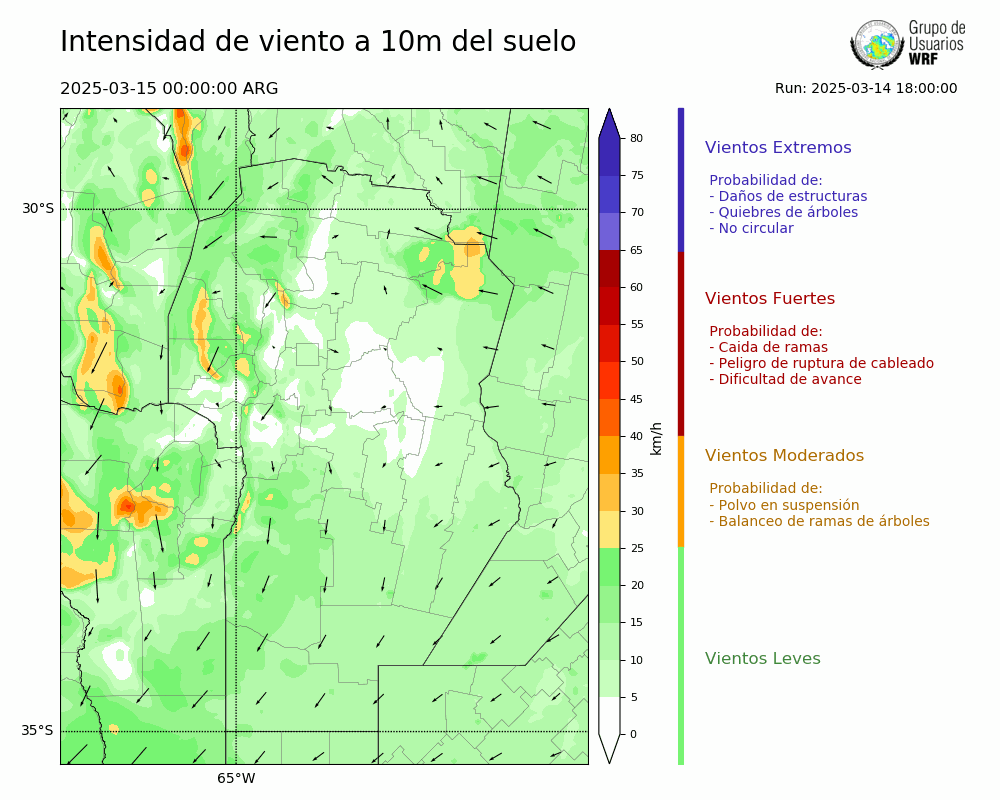 • Intensidad máxima: 4.91 km/h (15/03/2025 00hs.)