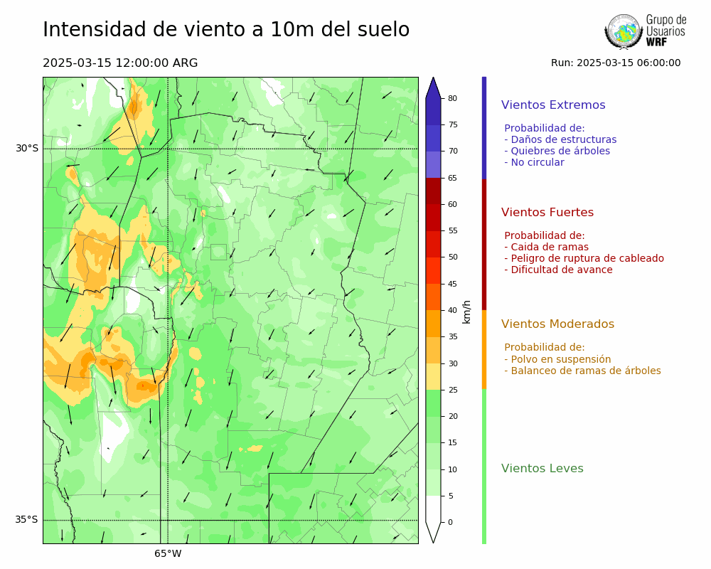 • Intensidad máxima: 12.36 km/h (16/03/2025 03hs.)
