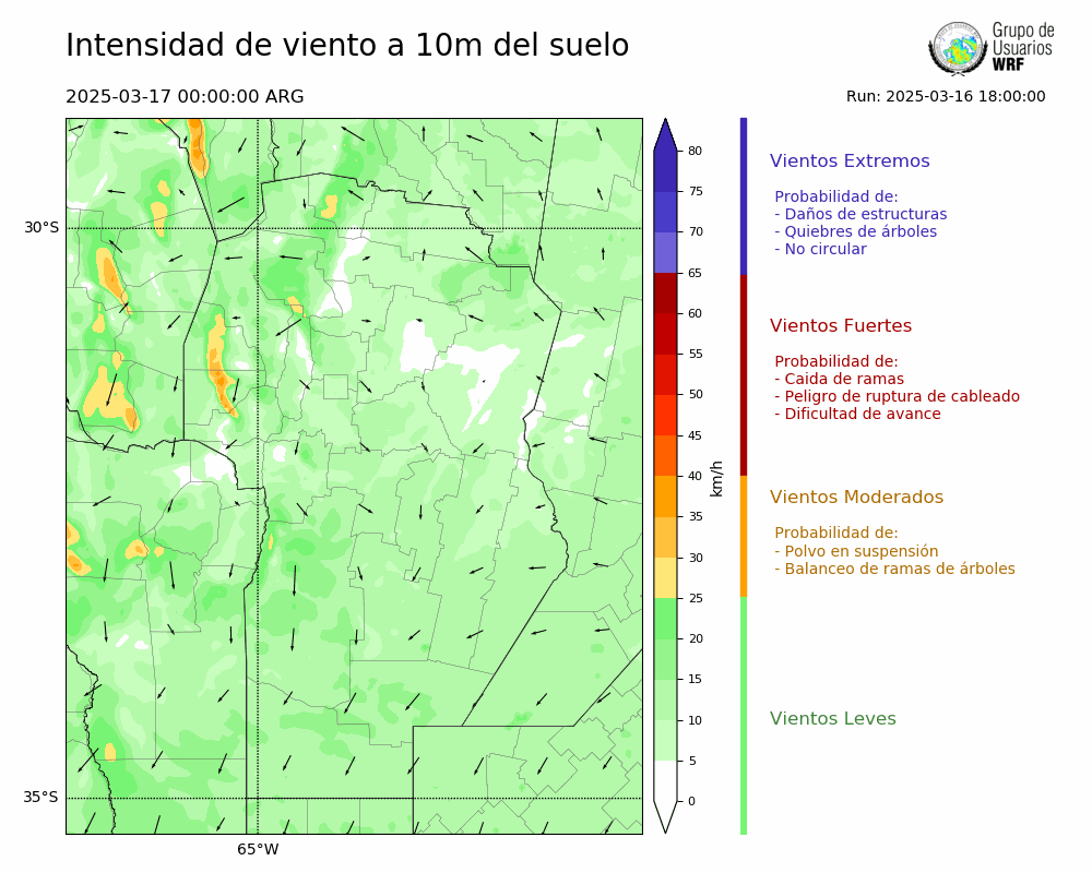 • Intensidad máxima: 15.89 km/h (19/03/2025 04hs.)