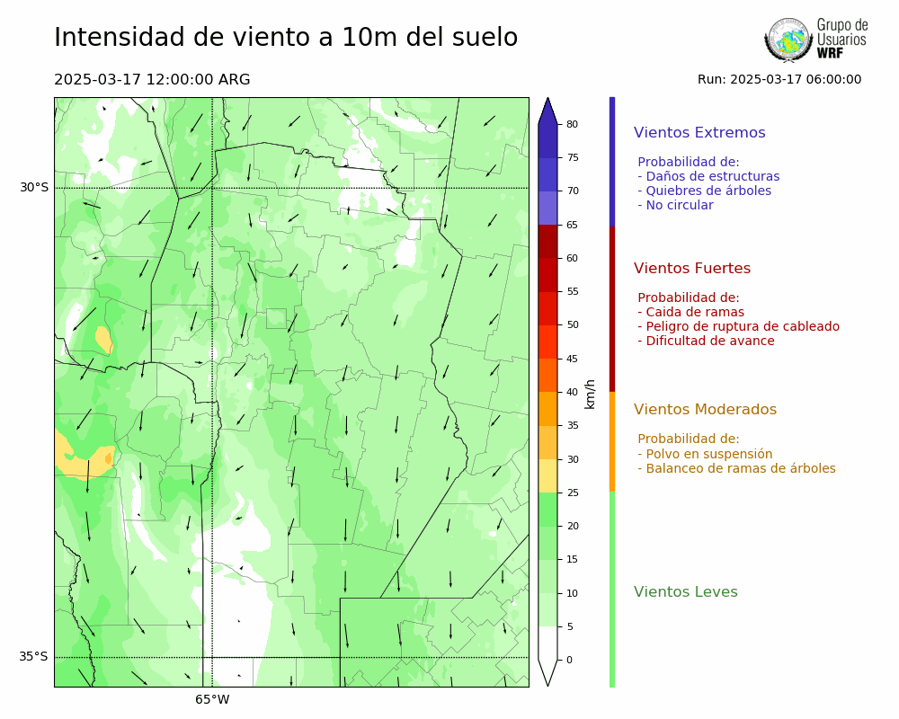 • Intensidad máxima: 17.97 km/h (19/03/2025 22hs.)