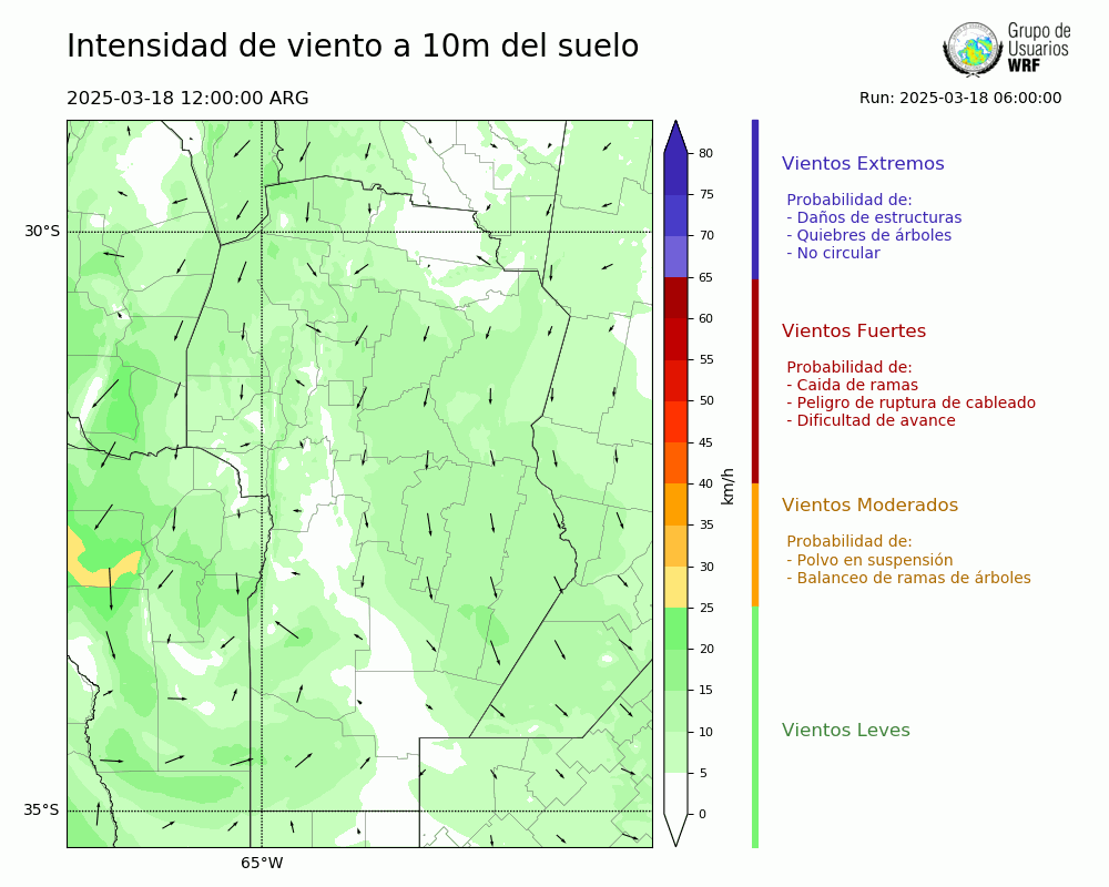 • Intensidad máxima: 17.14 km/h (18/03/2025 18hs.)