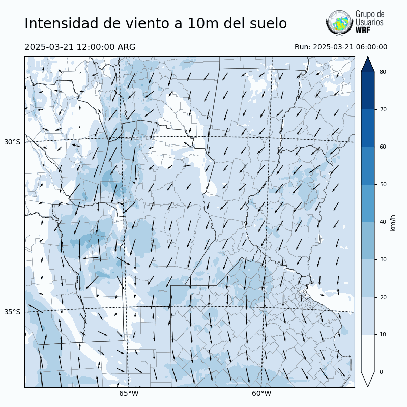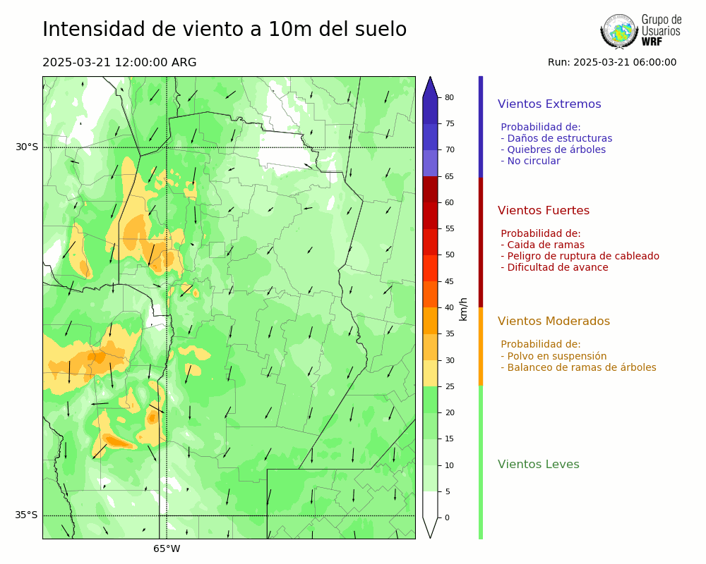 • Intensidad máxima: 24.75 km/h (21/03/2025 12hs.)