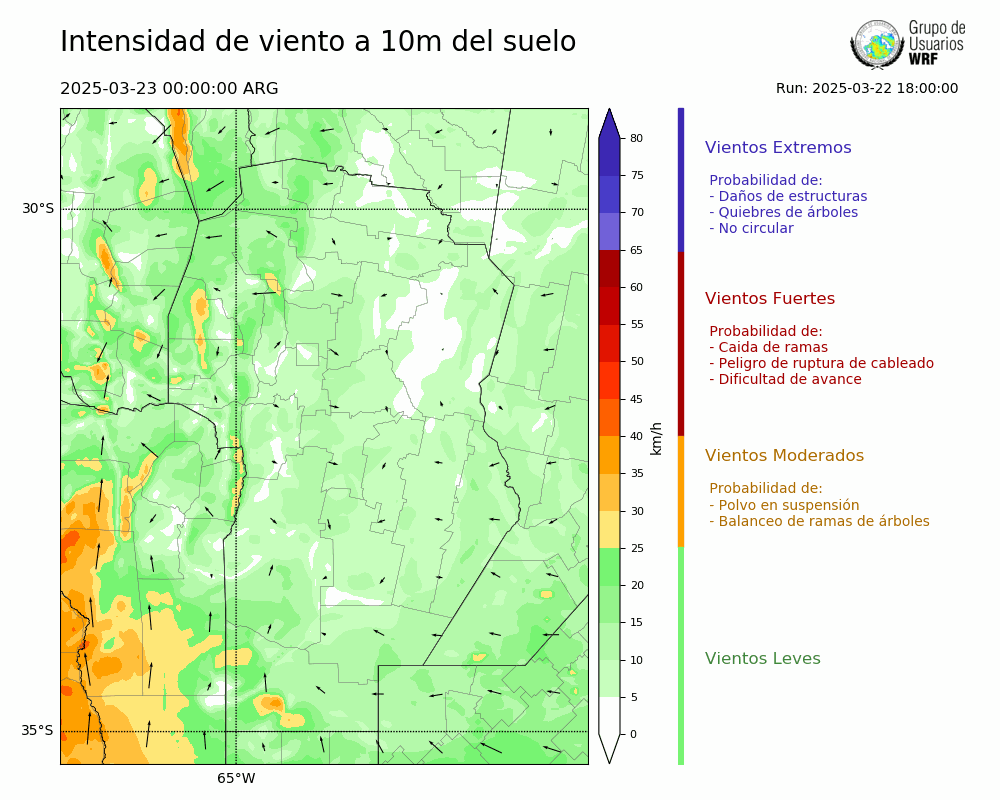 • Intensidad máxima: 13.42 km/h (23/03/2025 00hs.)