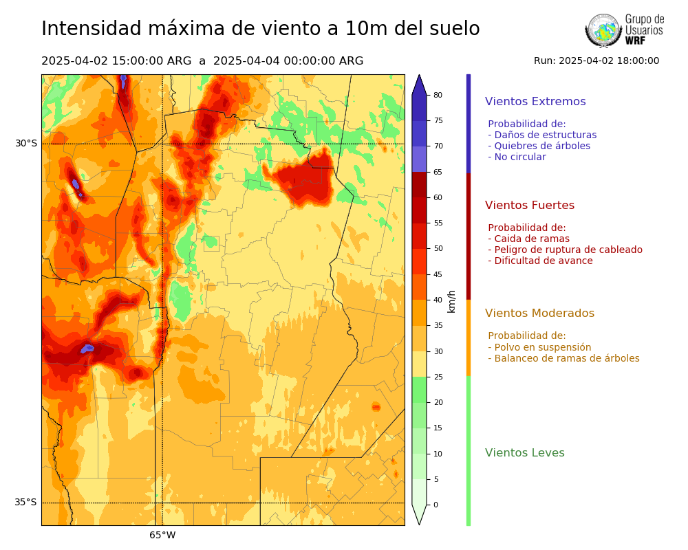 • Intensidad máxima: 10.74 km/h (04/04/2025 21hs.)