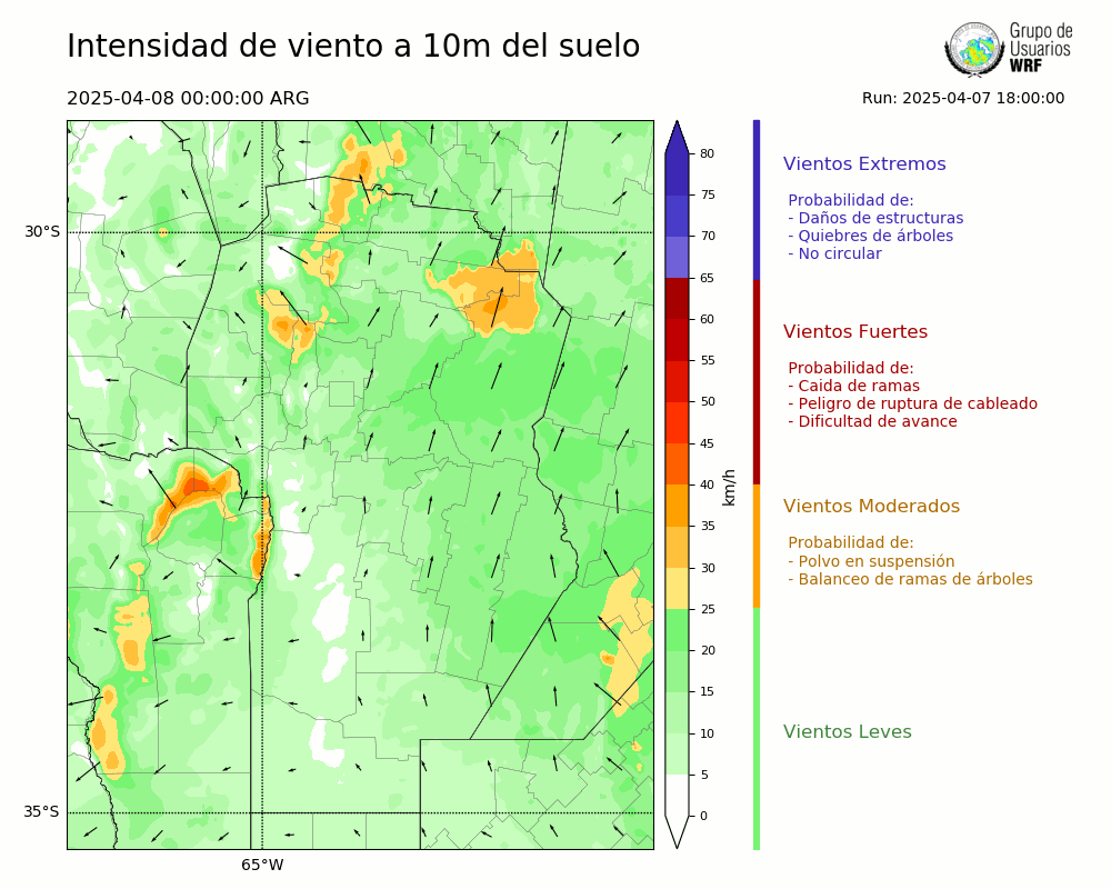 • Intensidad máxima: 14.56 km/h (08/04/2025 11hs.)