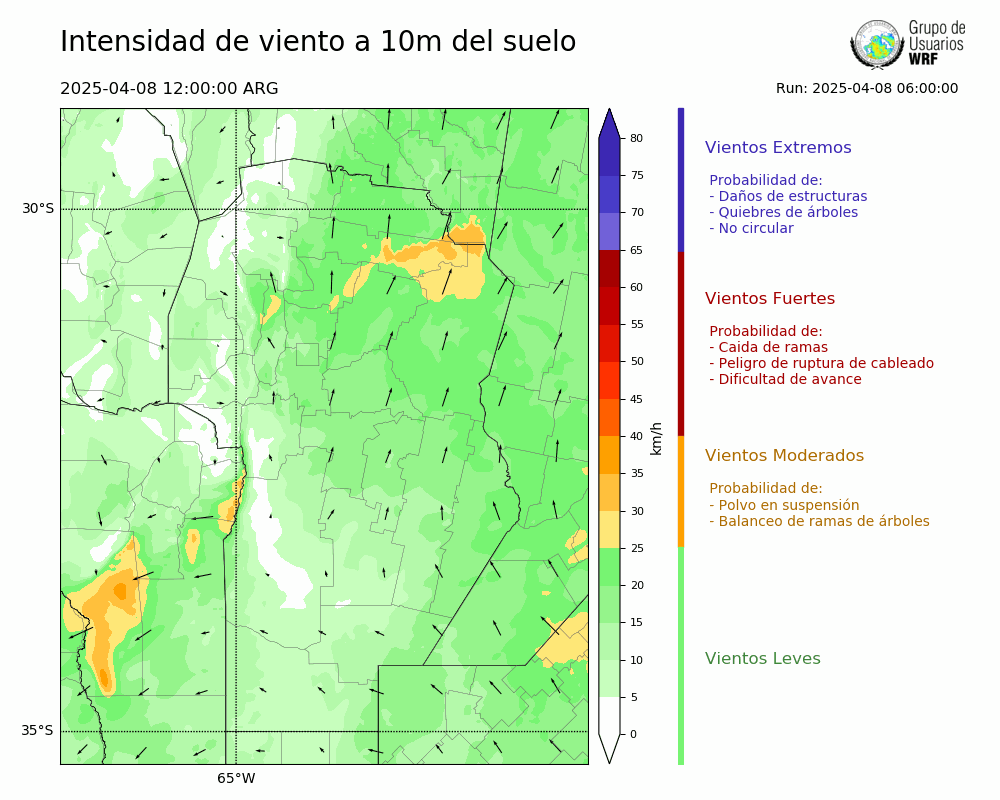 • Intensidad máxima: 14.98 km/h (08/04/2025 19hs.)