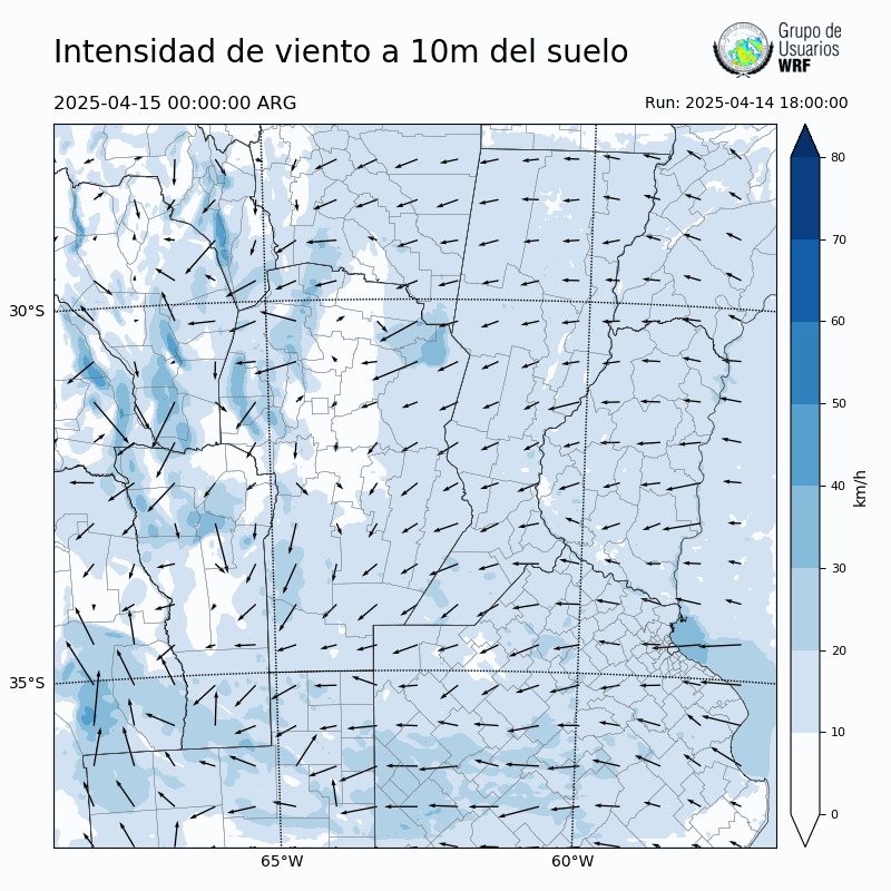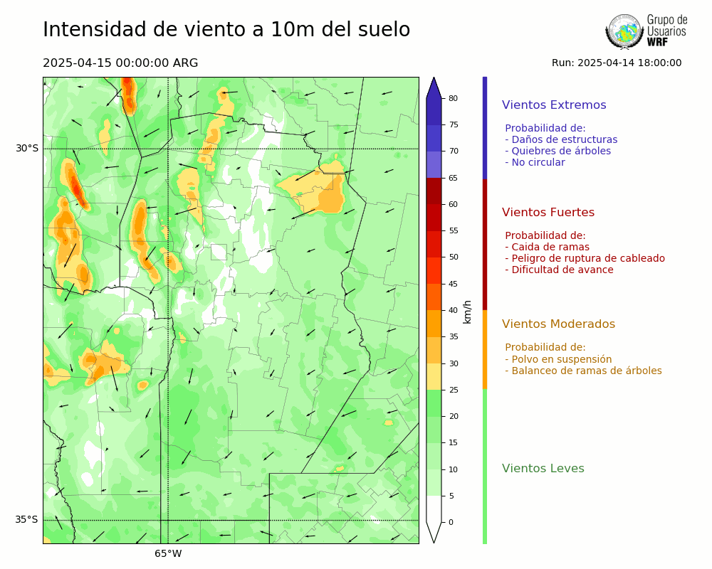 • Intensidad máxima: 17.41 km/h (15/04/2025 09hs.)