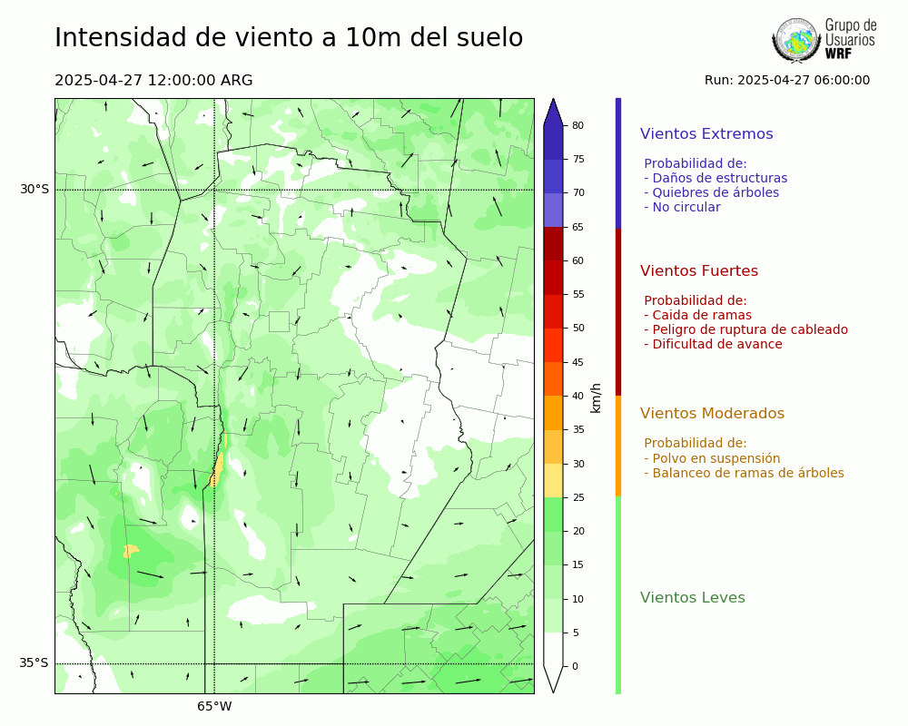 • Intensidad máxima: 10.80 km/h (27/04/2025 17hs.)