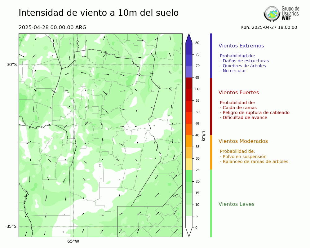 • Intensidad máxima: 9.96 km/h (28/04/2025 11hs.)
